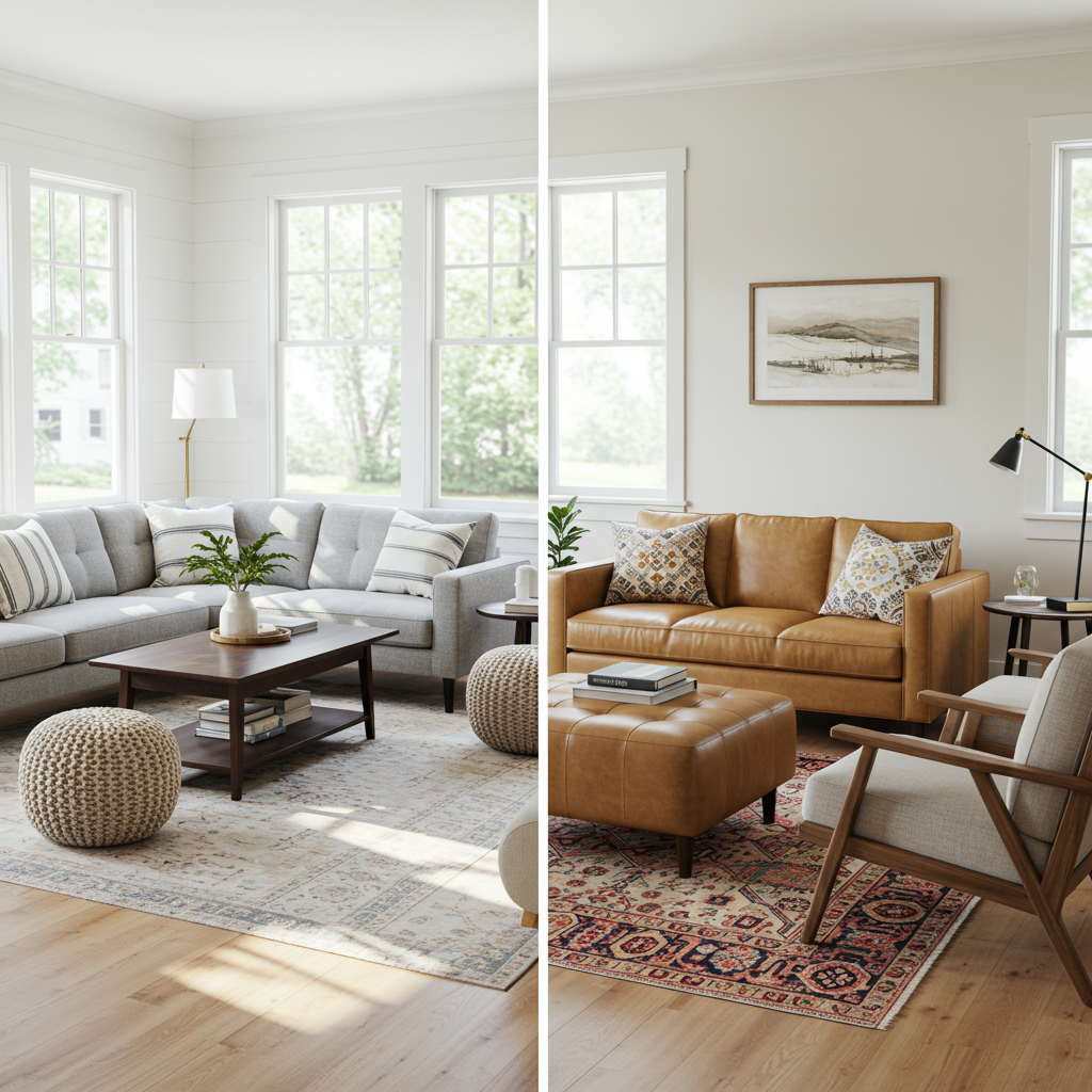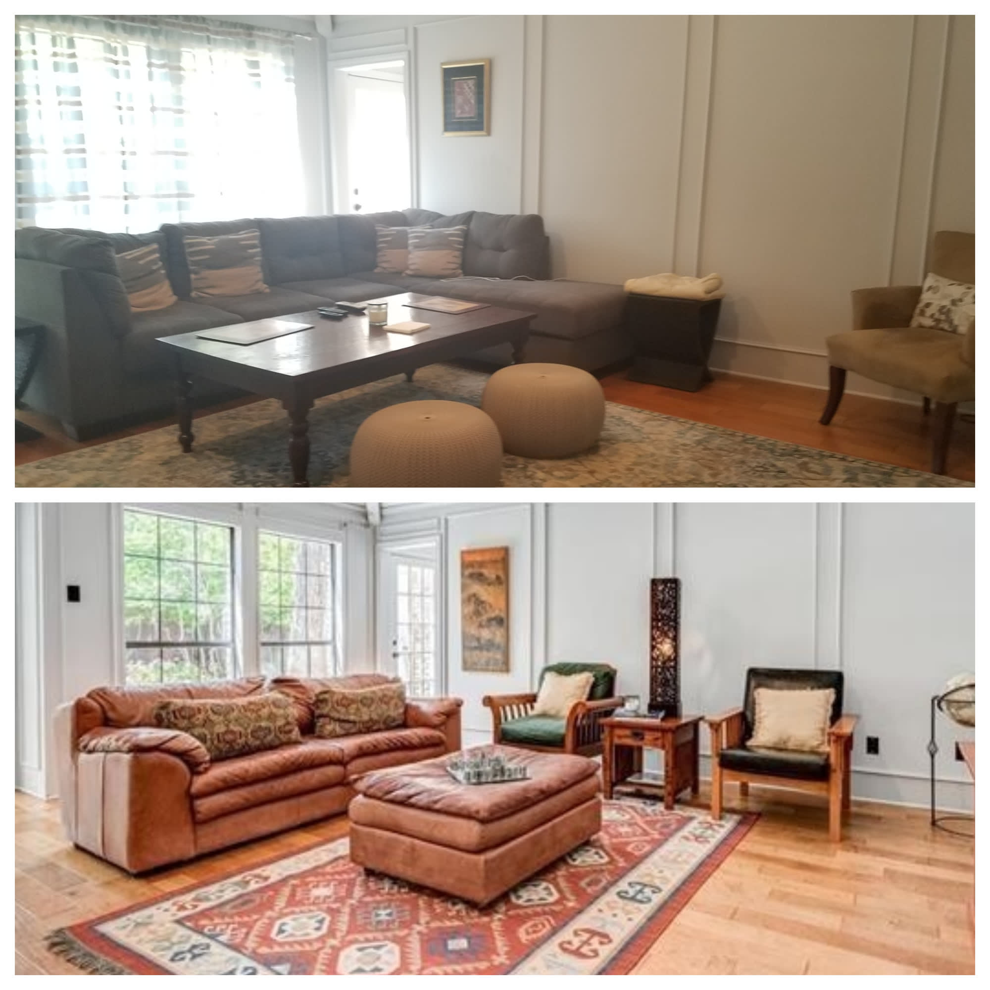 The photo above is a "before and after" view of the living room from a listing we staged for our client.