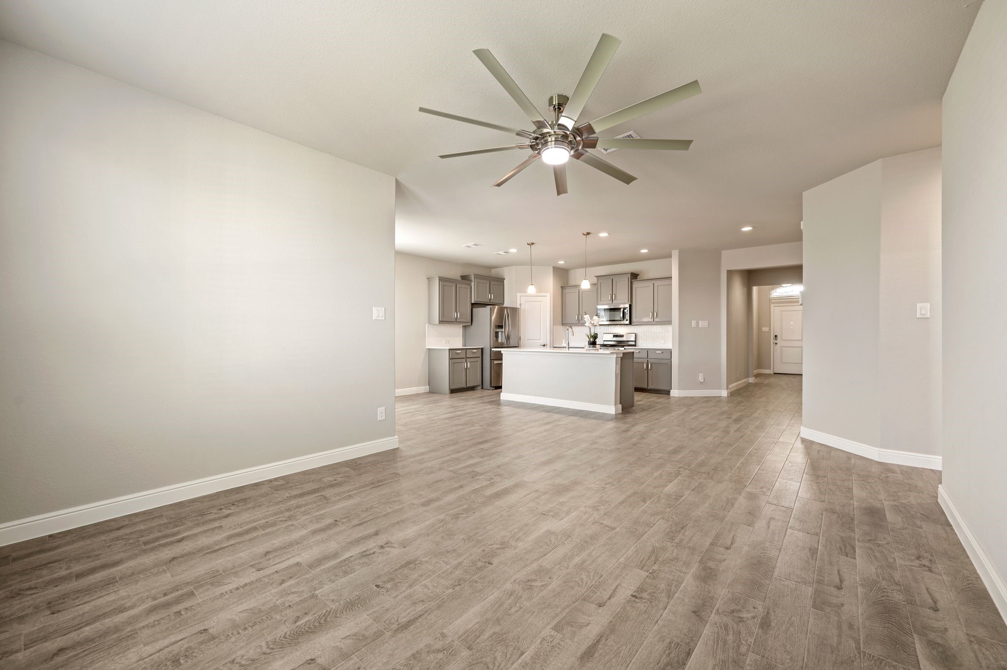 Welcome to this beautifully designed, lightly lived-in, DR Horton home in North Fort Worth-Haslet, where modern finishes meet everyday convenience. Inside, you'll find an open-concept layout that's both stylish and functional, feels almost new, and features a spacious living area flowing seamlessly into the dining and kitchen spaces--perfect for gatherings or quiet nights in. The kitchen is a true centerpiece with quartz countertops, am oversized island, gas range, built-in microwave, dishwasher, refrigerator, plenty of cabinets, and a generous walk-in pantry. Natural light fills the breakfast area, creating a warm, inviting space for meals. The large primary suite offers a peaceful retreat with a walk-in closet, double sinks, a standalone shower, and linen storage. Three additional bedrooms are comfortably sized, while the pretty guest bath is situated perfectly in-between. Everyday living is made simple with a large laundry room, tankless water heater, and included washer and dryer. A sprinkler system keeps the lawn green, and the two-car garage provides plenty of parking and storage. Step outside to enjoy the covered back patio, perfect for relaxing or entertaining, with a large storage shed offering extra space for tools and gear. A cute neighborhood park is only steps away with plenty of space to explore, hold large gatherings, and have lots of outdoor fun! This home is move-in ready and equipped with all the perks, making it a great choice for choosy buyers seeking comfort, style, and the perfect place to call home!