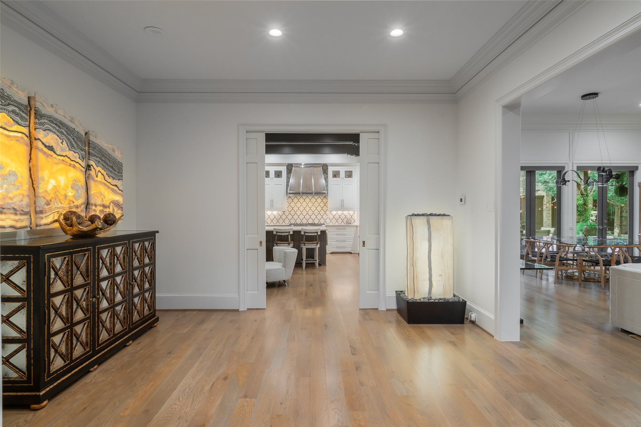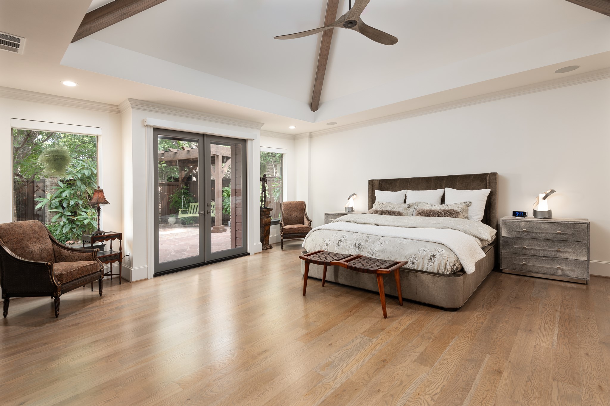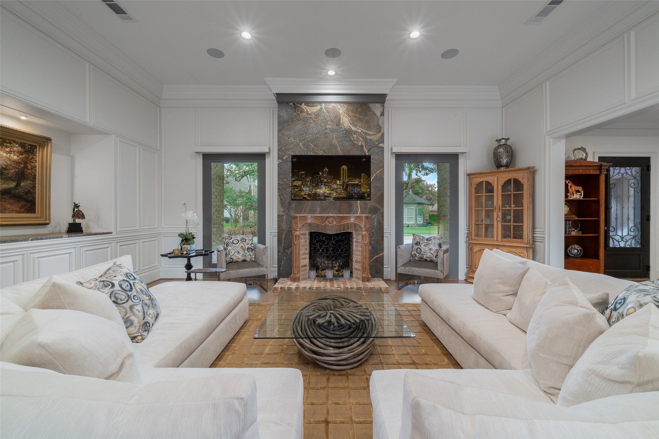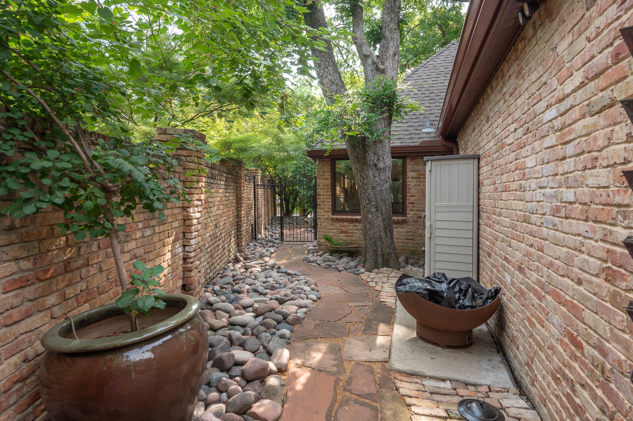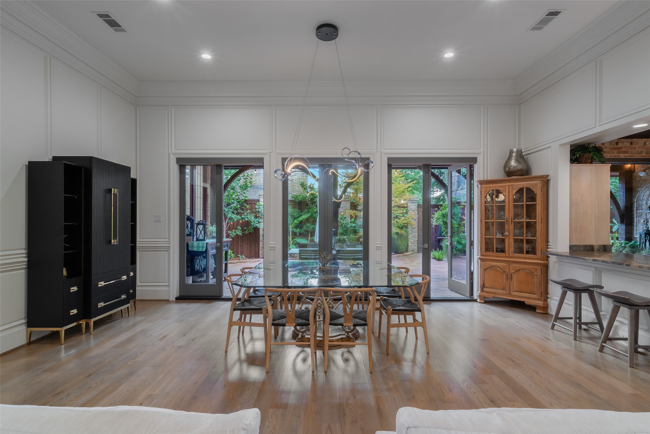 Your sanctuary awaits. Masterfully remodeled, single-story in exclusive Chalfont Place. Rare opportunity to own an enchanting home of this quality and character. Soaring ceilings, walls of windows & French doors, Lutron lighting, every detail done. Chef's kitchen, state-of-the-art appliances, sleek countertops, oversized island, & cozy fireplace. Open living & dining, hidden cabinets, electric shades & second fireplace. Experience the Bar's brick flooring, wood-beamed ceiling, Subzero wine cooler, icemaker, frig, & perfect picture window framing the courtyard fountain. Peaceful primary suite with stunning views to the manicured gardens, cathedral ceiling, dbl-sided bath, closets & toilets, free-standing tub. You'll find it impossible to stay indoors with the magical patio, tranquil gardens, fountain, arbor, walkways, lush landscaping. Guest bedroom-office + ensuite, and separate third bedroom + large bath. Impeccable living, ultra-private, yet minutes from all that Dallas has to offer!
