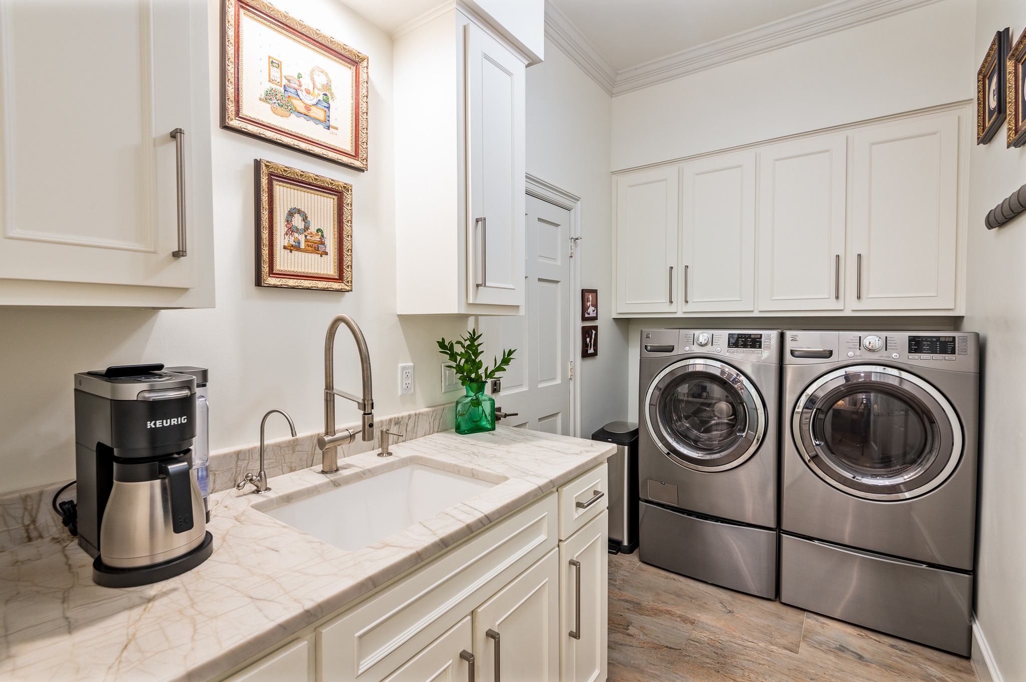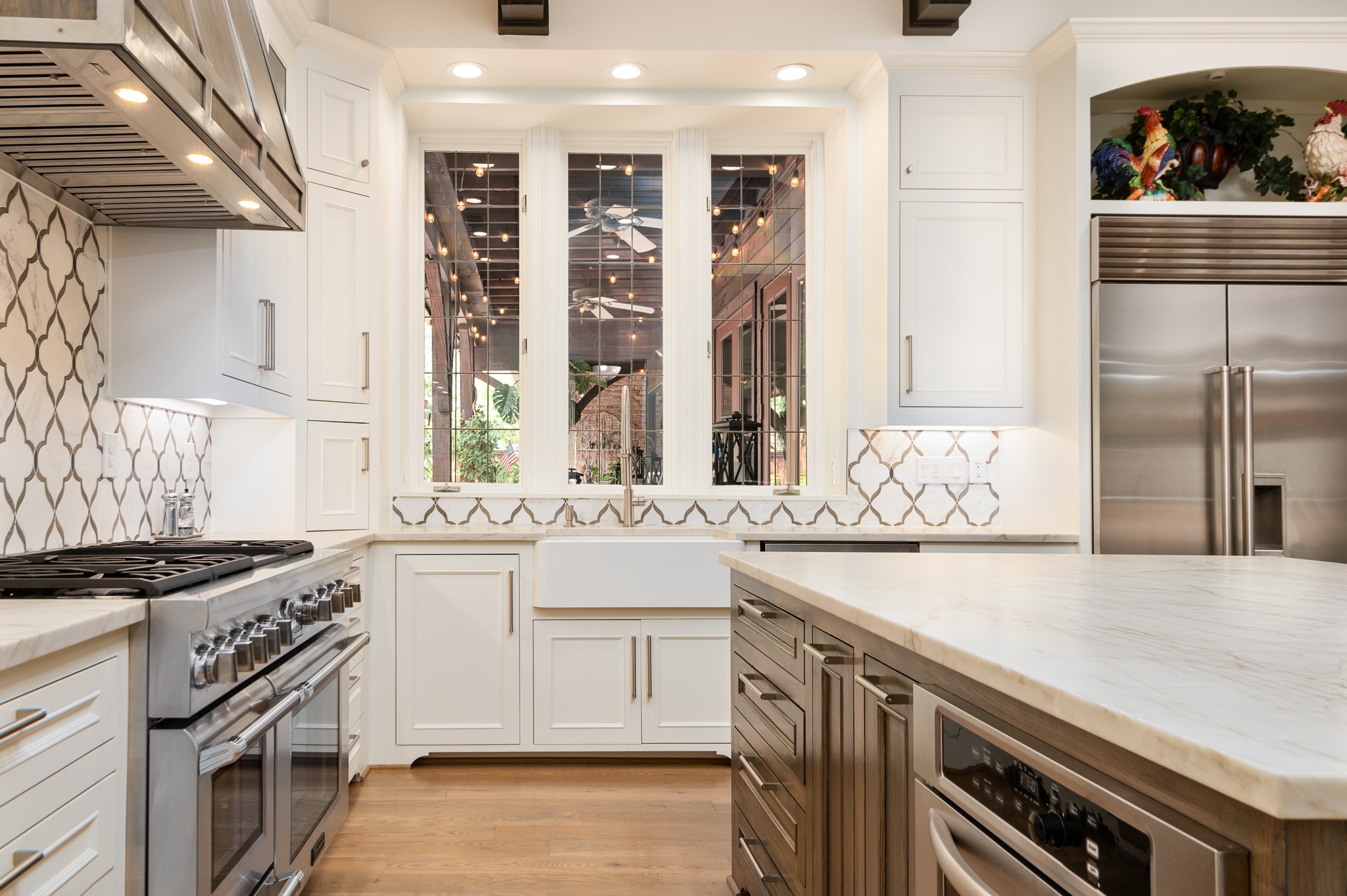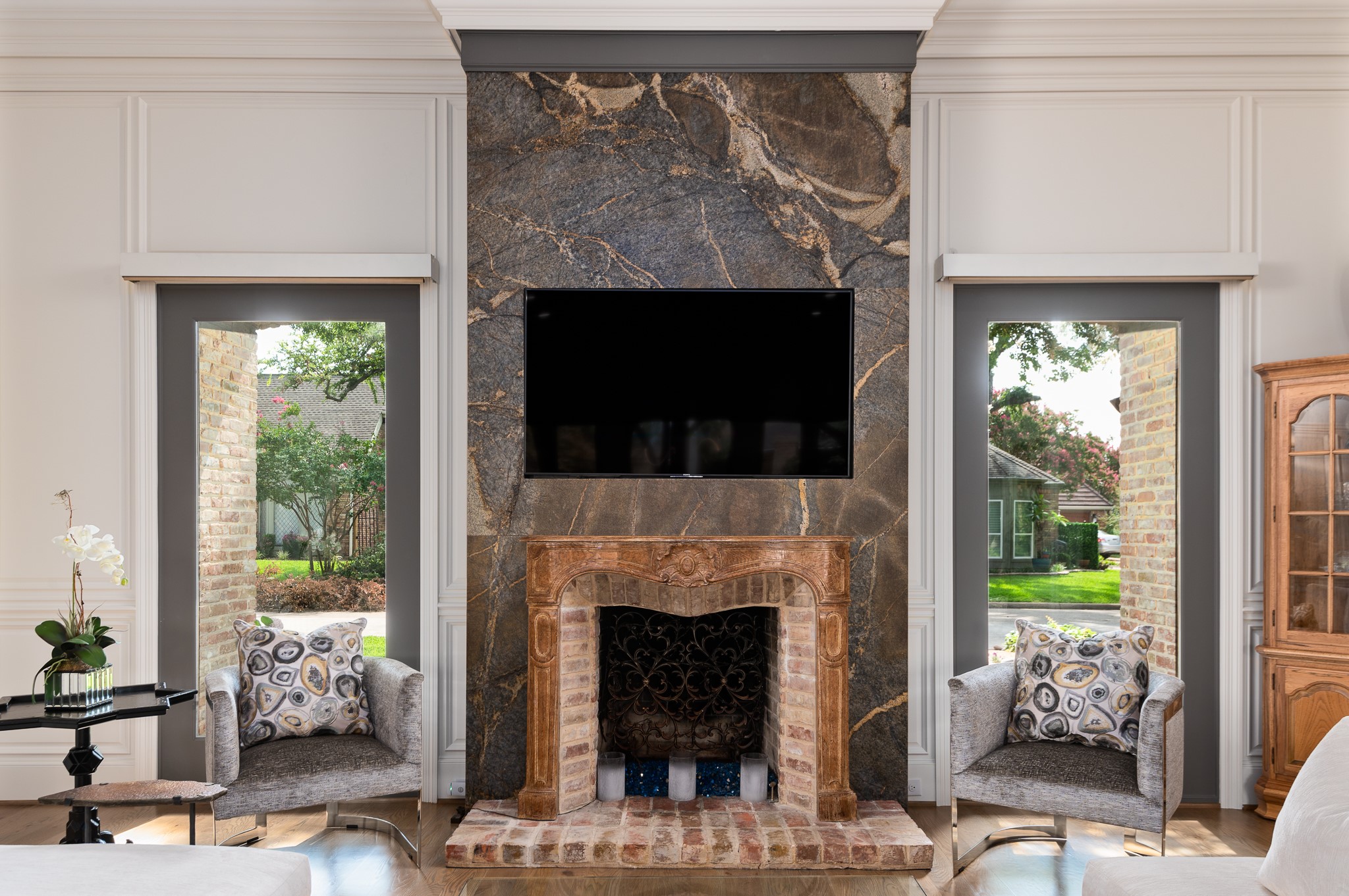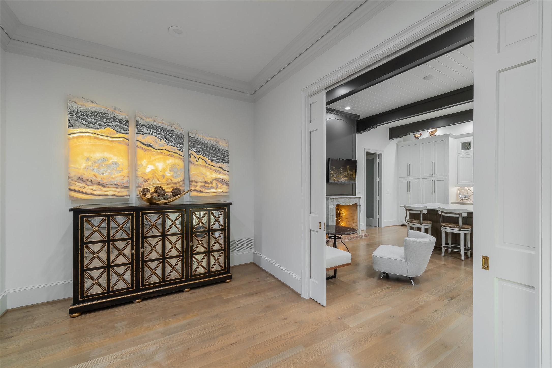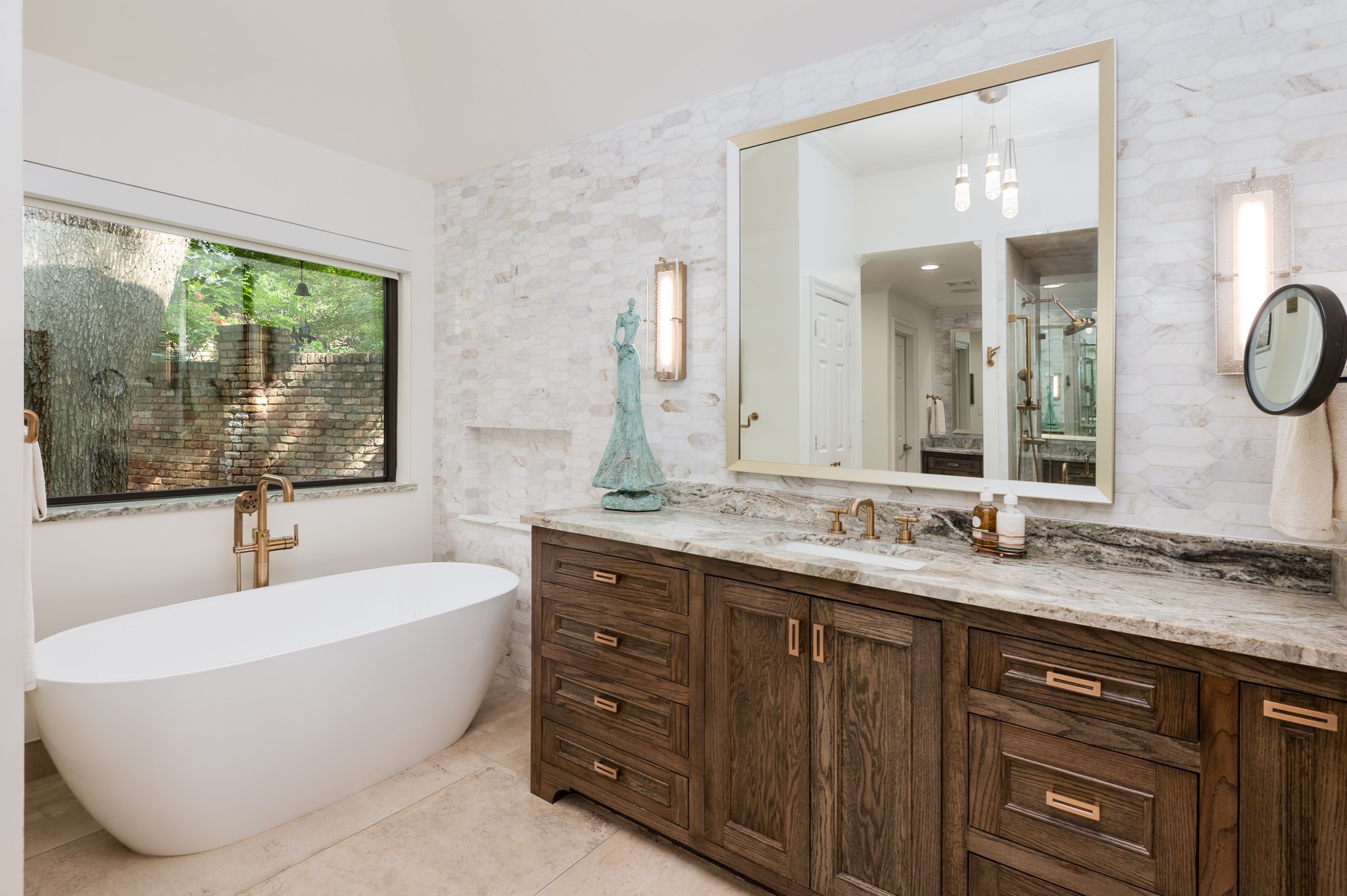 Your sanctuary awaits. Masterfully remodeled, single-story in exclusive Chalfont Place. Rare opportunity to own an enchanting home of this quality and character. Soaring ceilings, walls of windows & French doors, Lutron lighting, every detail done. Chef's kitchen, state-of-the-art appliances, sleek countertops, oversized island, & cozy fireplace. Open living & dining, hidden cabinets, electric shades & second fireplace. Experience the Bar's brick flooring, wood-beamed ceiling, Subzero wine cooler, icemaker, frig, & perfect picture window framing the courtyard fountain. Peaceful primary suite with stunning views to the manicured gardens, cathedral ceiling, dbl-sided bath, closets & toilets, free-standing tub. You'll find it impossible to stay indoors with the magical patio, tranquil gardens, fountain, arbor, walkways, lush landscaping. Guest bedroom-office + ensuite, and separate third bedroom + large bath. Impeccable living, ultra-private, yet minutes from all that Dallas has to offer!