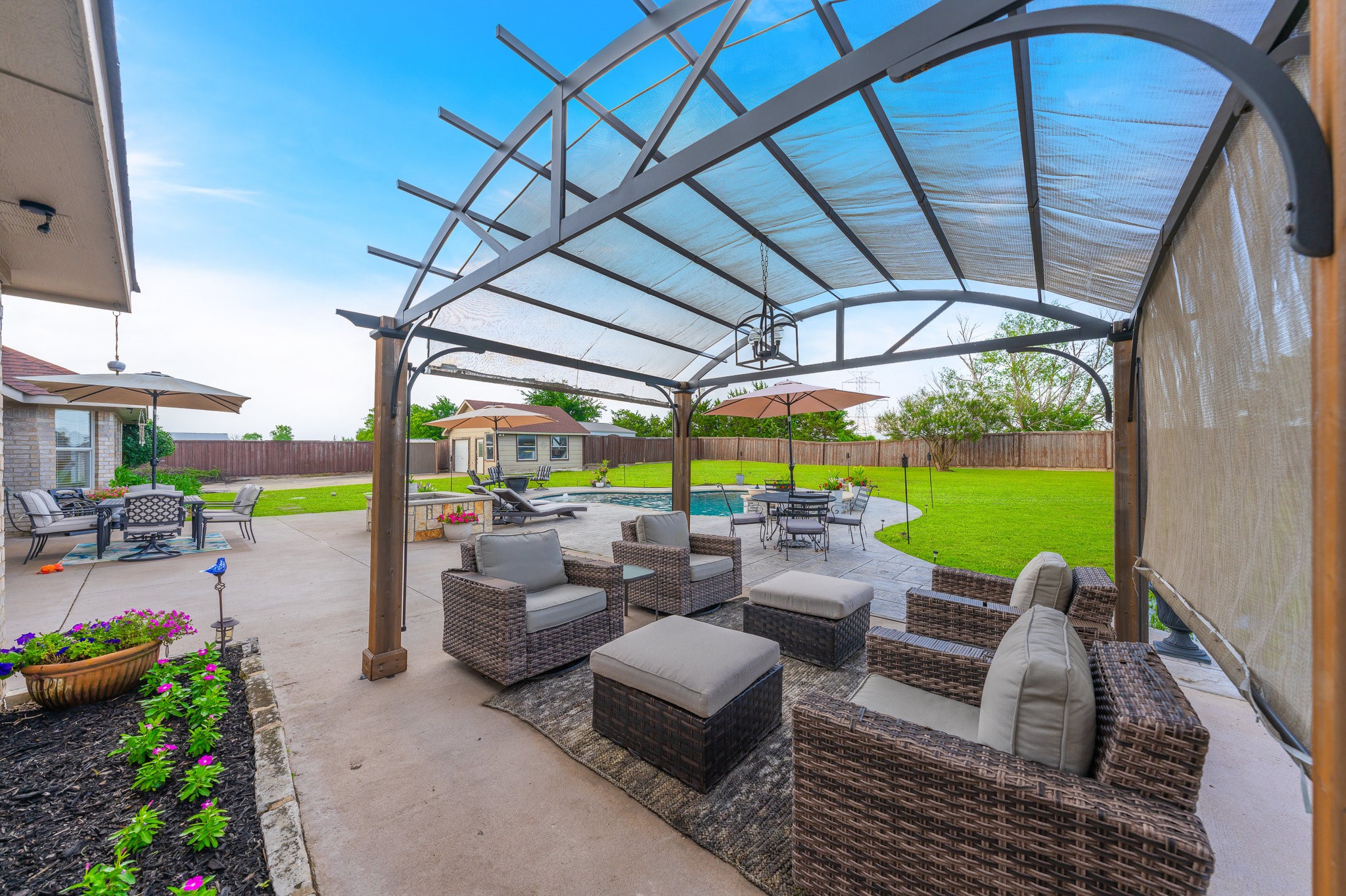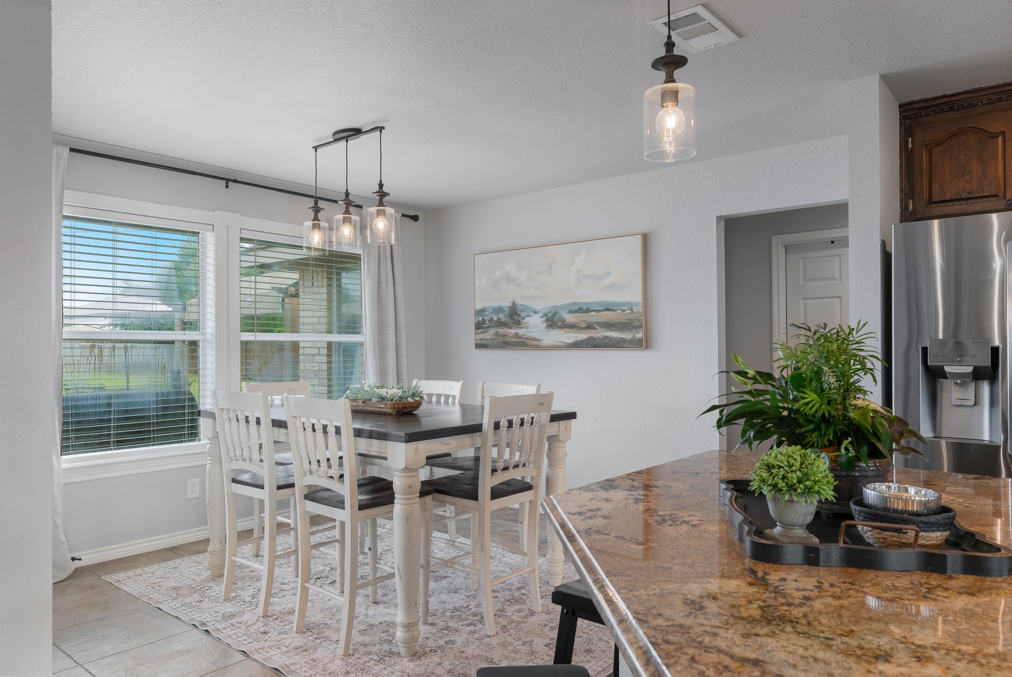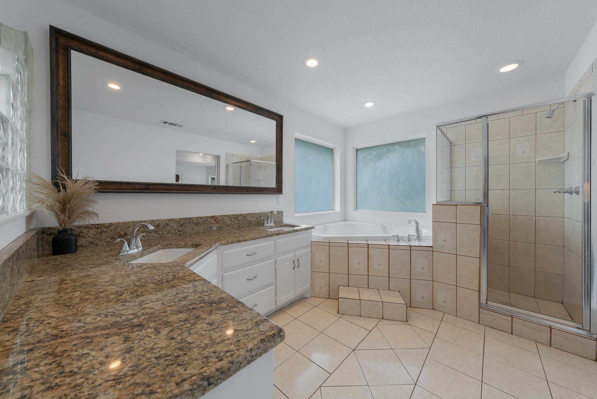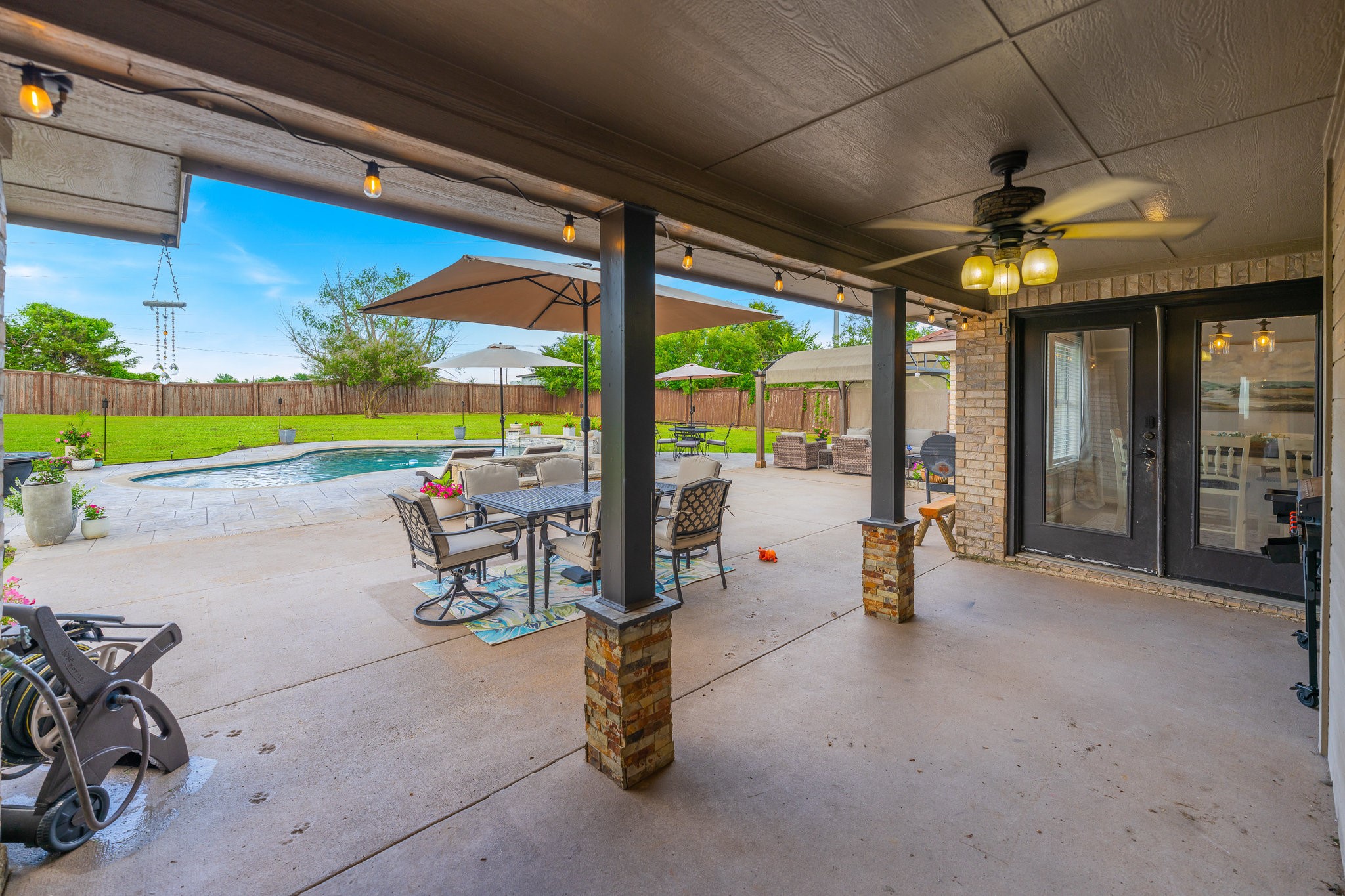The kitchen is a chef's dream, featuring granite countertops, 42-inch cabinets, and stainless steel appliances, providing both functionality and timeless style. The oversized primary suite is a true retreat with a huge walk-in closet and beautifully refreshed bath. The real showstopper is the incredible backyard. Step outside to a resort-style pool, complete with water features, surrounded by lush landscaping, multiple seating areas, and a covered patio perfect for entertaining or quiet evenings under the stars. Whether you're hosting family gatherings or enjoying a peaceful morning coffee, this backyard oasis has it all.