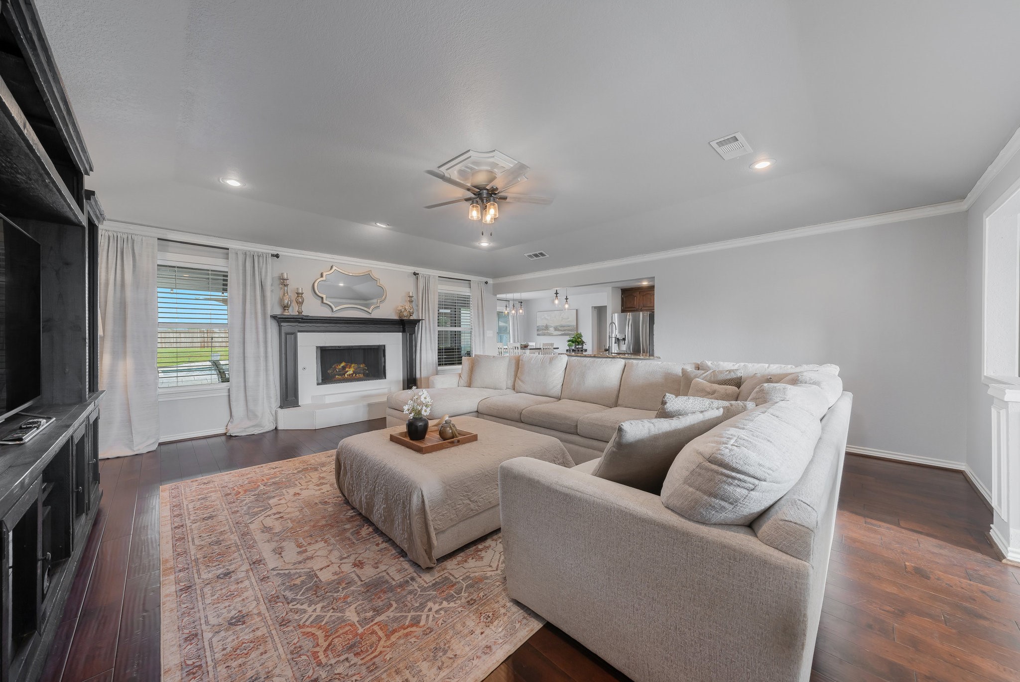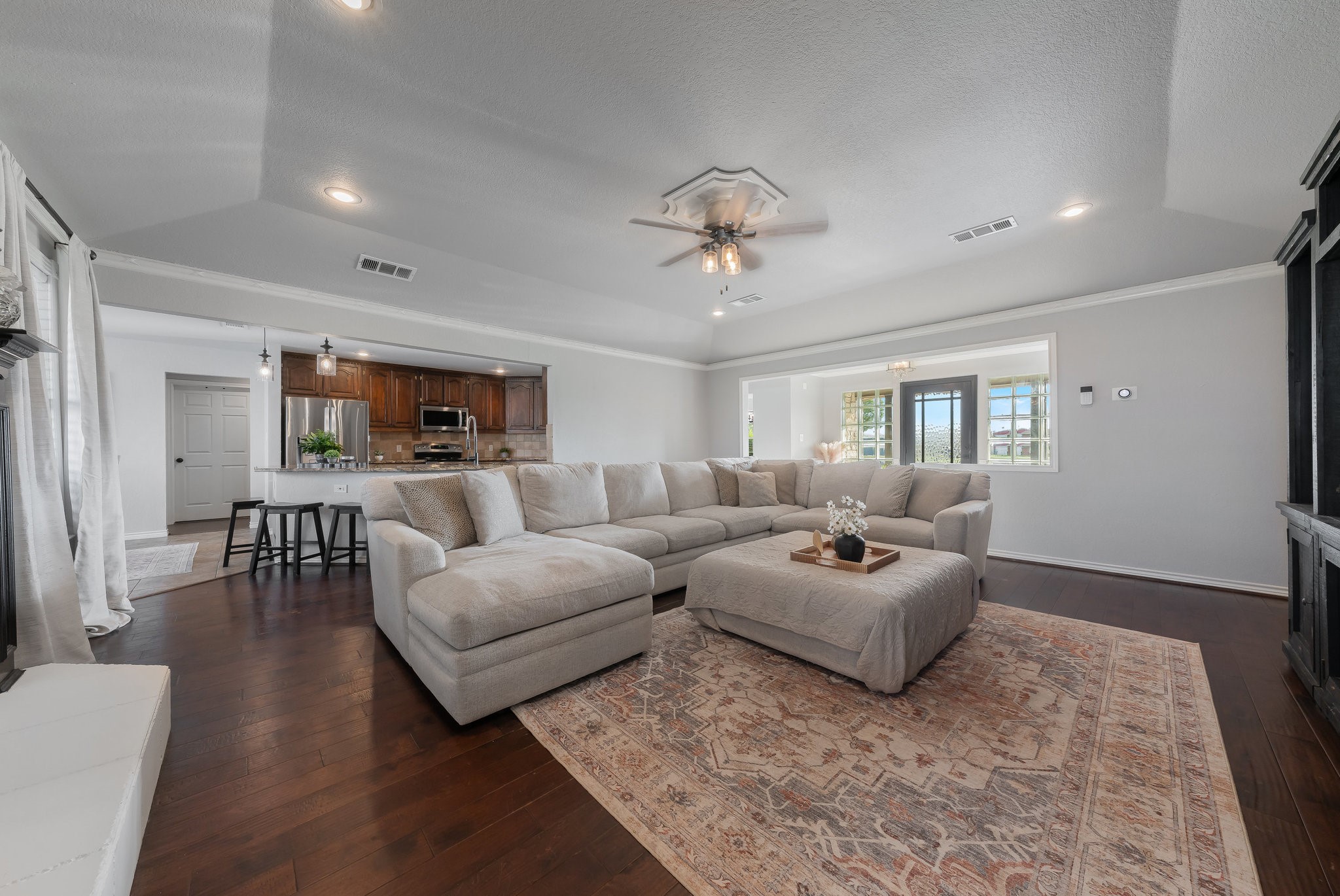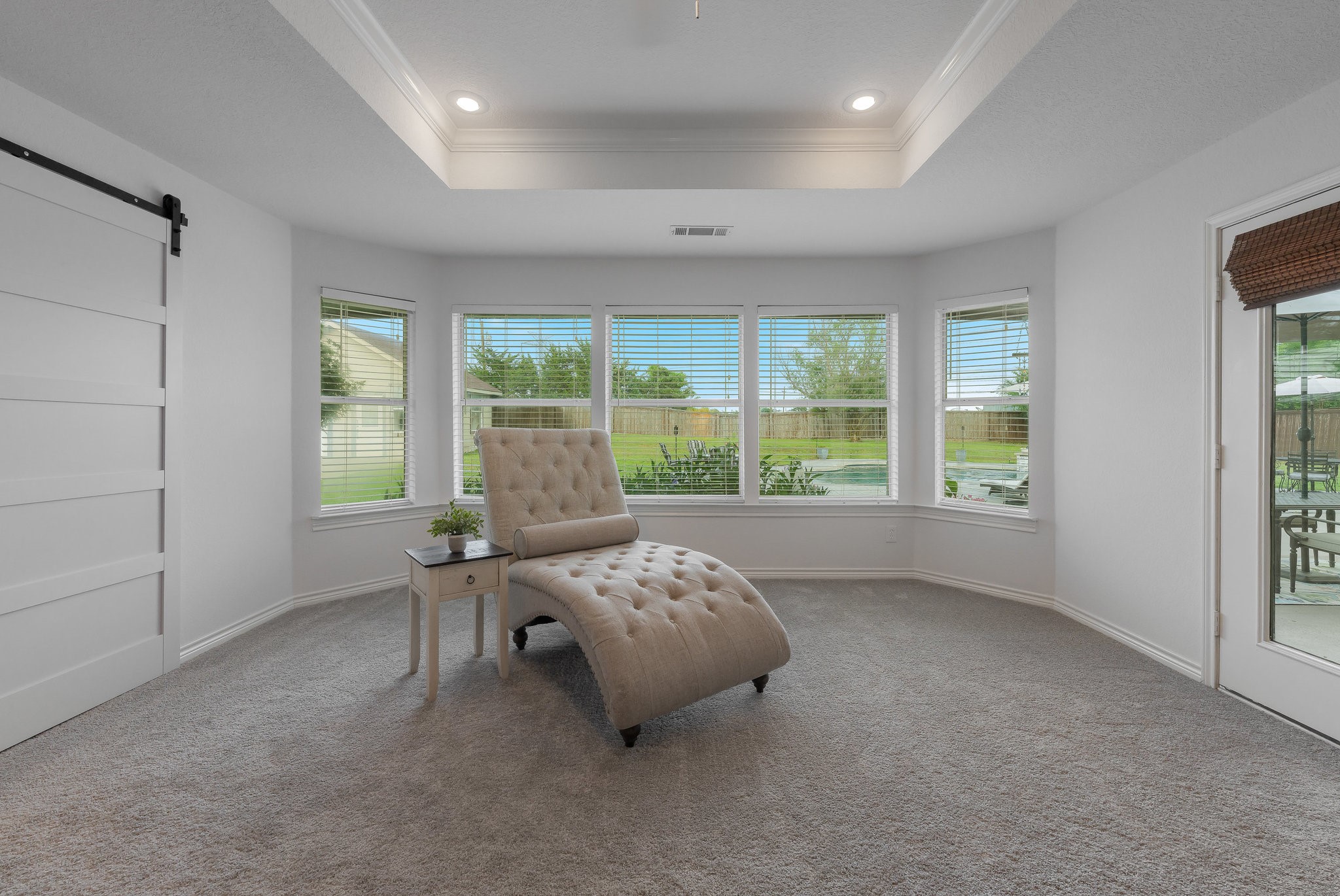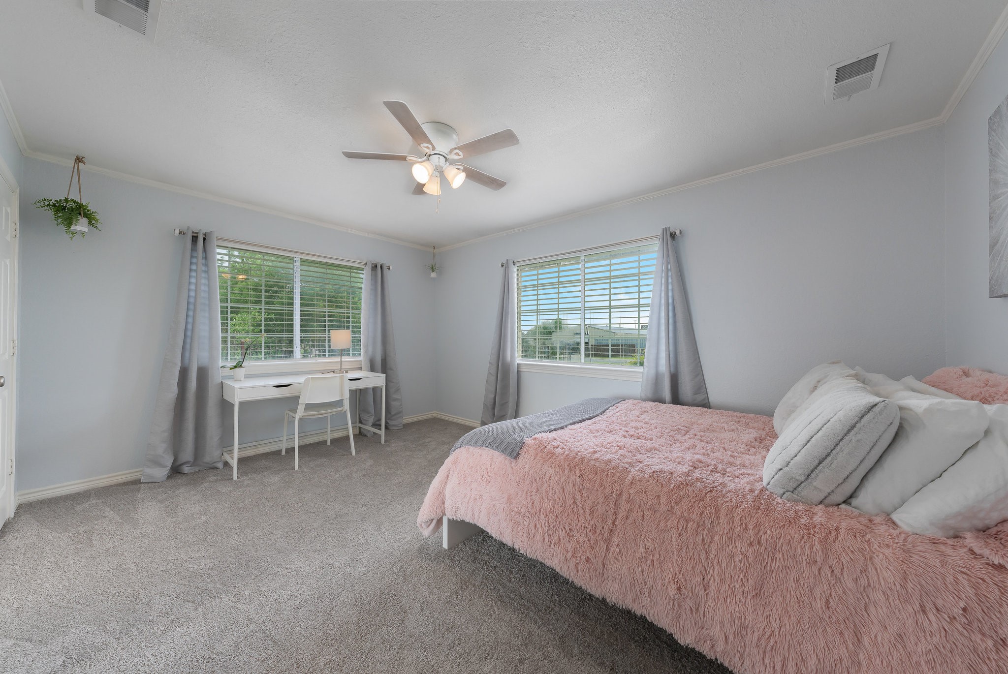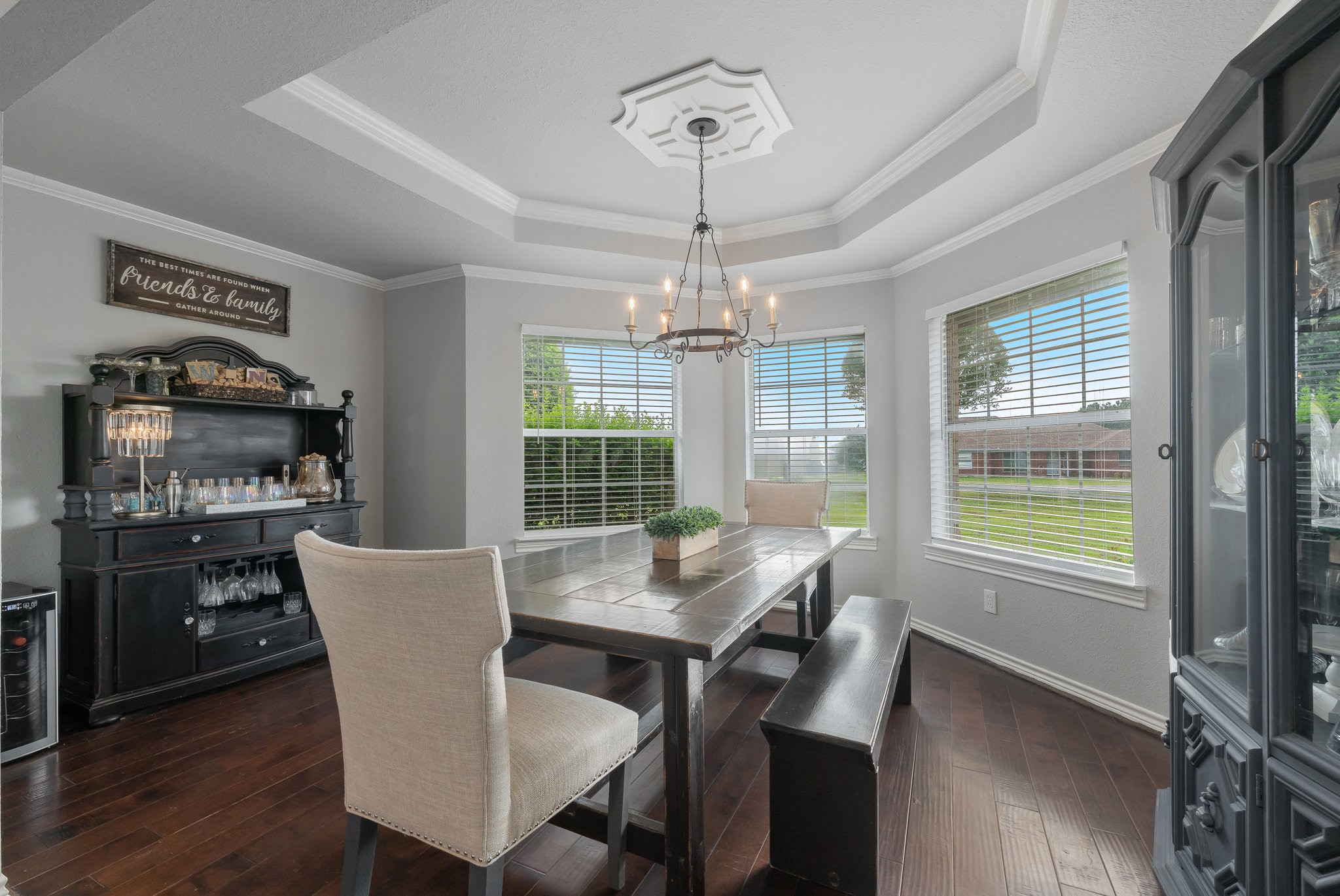 The kitchen is a chef's dream, featuring granite countertops, 42-inch cabinets, and stainless steel appliances, providing both functionality and timeless style. The oversized primary suite is a true retreat with a huge walk-in closet and beautifully refreshed bath. The real showstopper is the incredible backyard. Step outside to a resort-style pool, complete with water features, surrounded by lush landscaping, multiple seating areas, and a covered patio perfect for entertaining or quiet evenings under the stars. Whether you're hosting family gatherings or enjoying a peaceful morning coffee, this backyard oasis has it all.