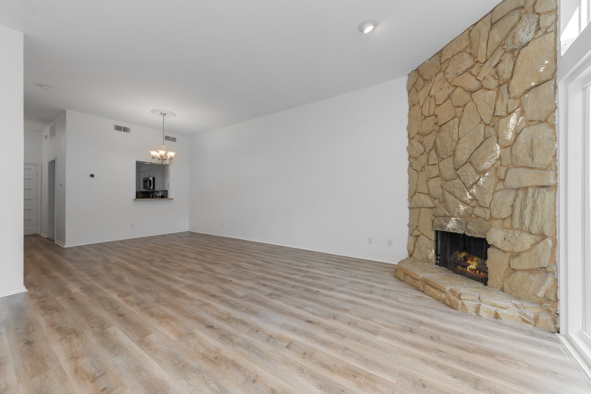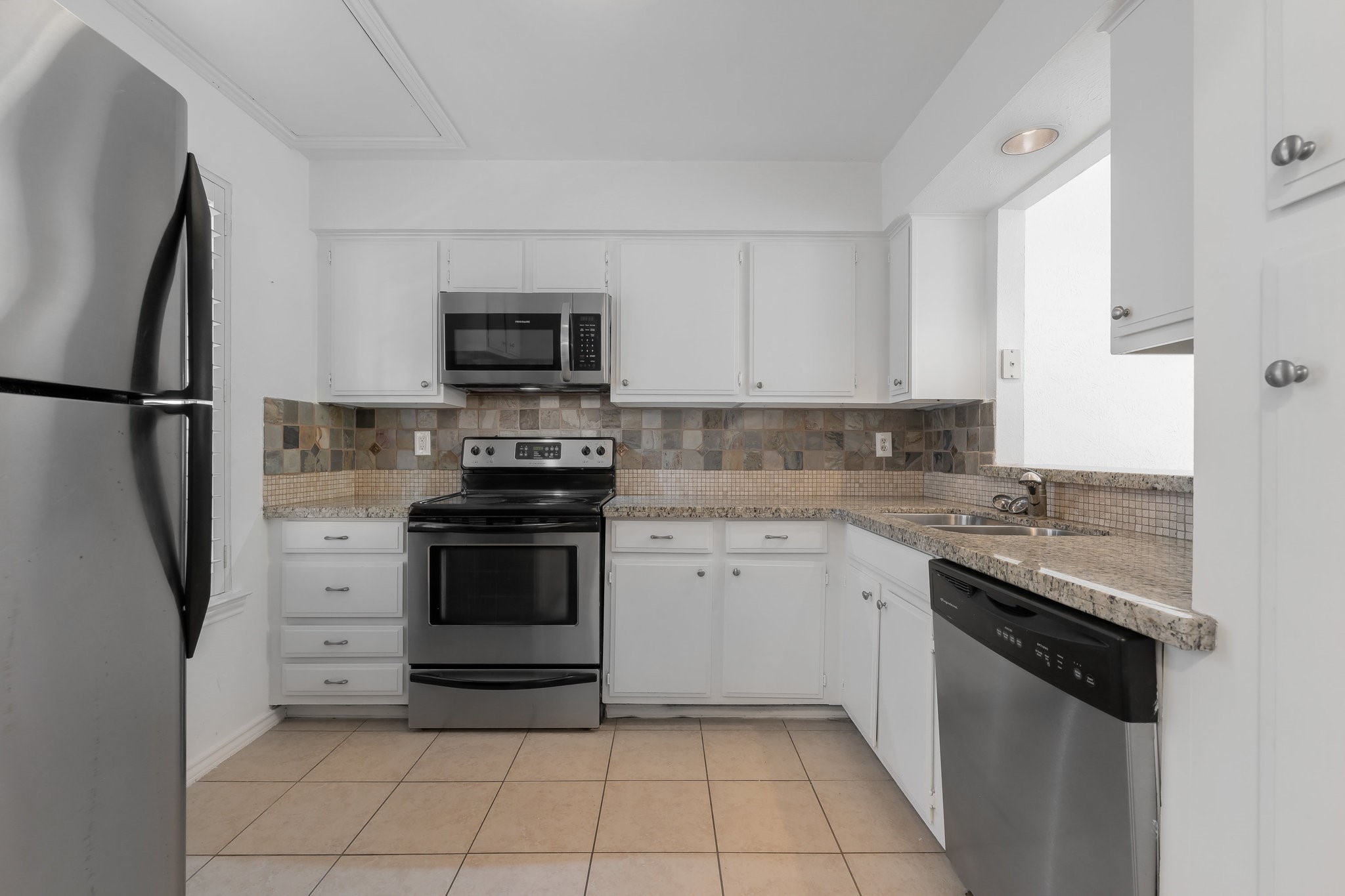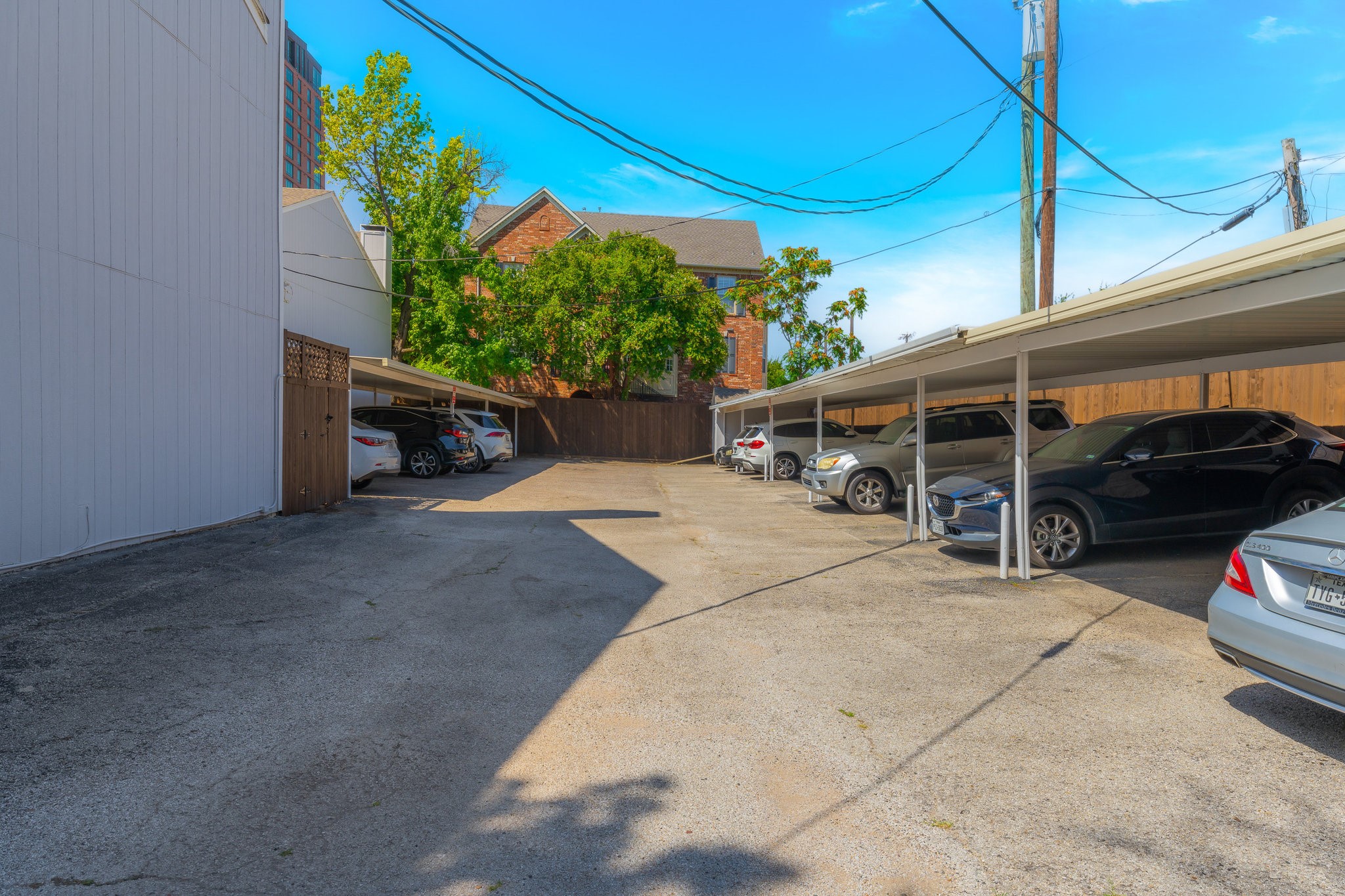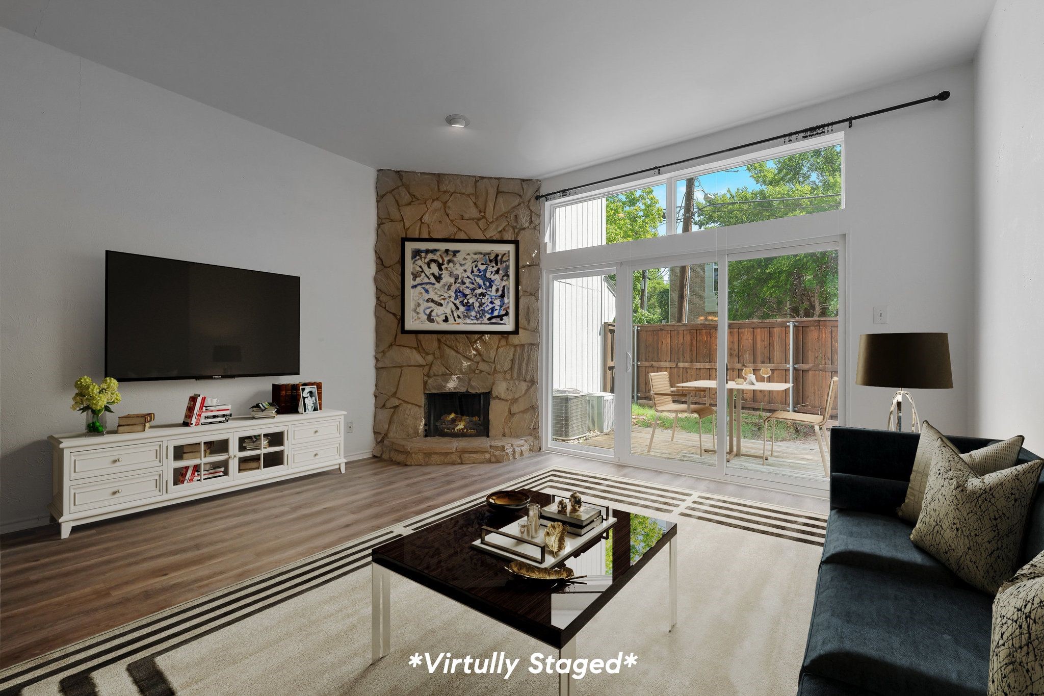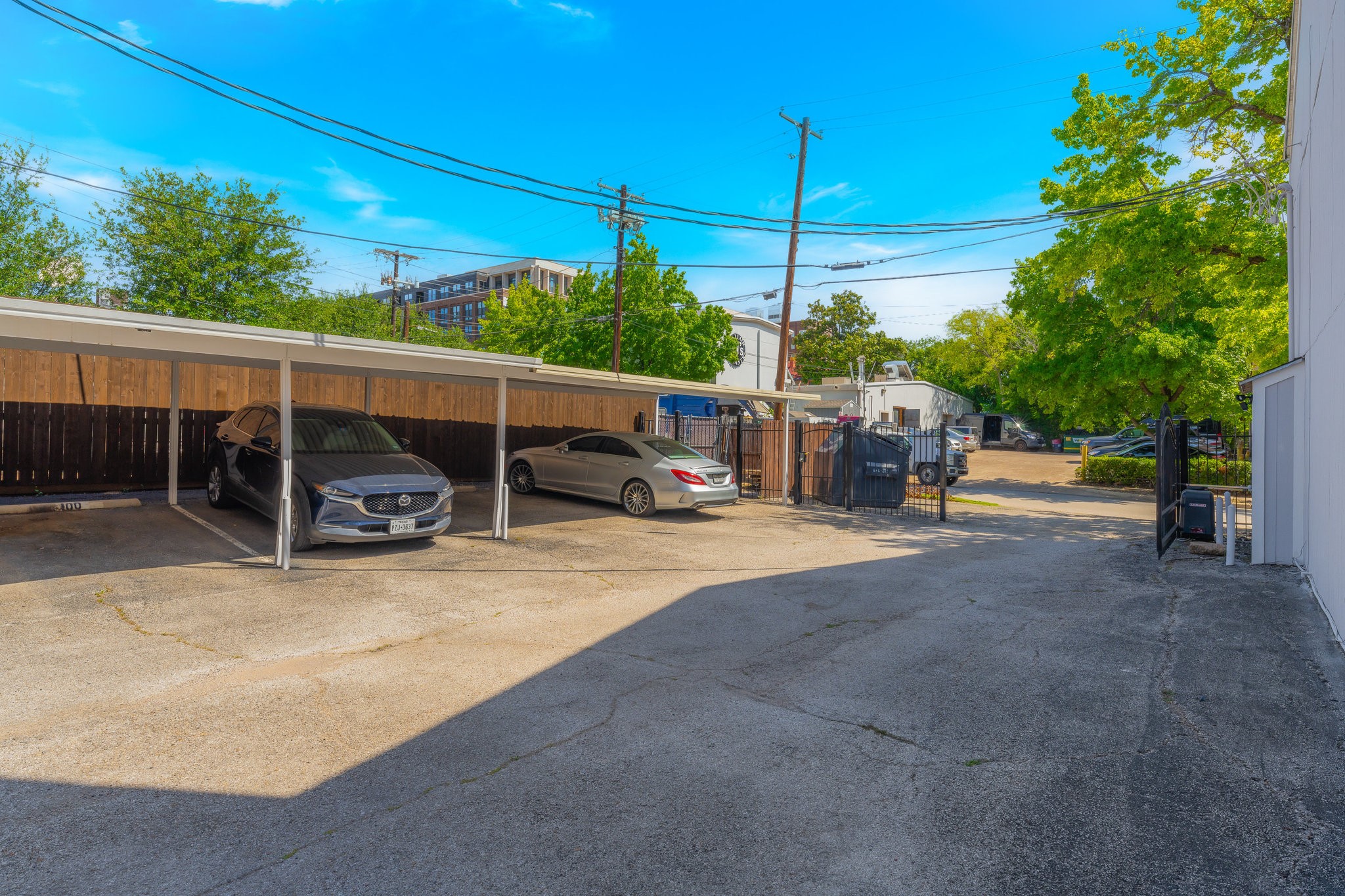 Charming, 2-bedroom, 1.5 bath, condo in sought-after Mansion Park, south of Oaklawn. Boutique community, surrounded by mature trees, in one of the most walkable neighborhoods in Dallas. You'll have easy access to the Katy Trail, Uptown, Medical District, and Downtown, plus quick connections to events, nightlife, shopping & dining, all with a small, private, and quiet neighborhood feel. Open floor plan, oversized windows in the living-dining, light & bright, beautiful laminate floors, stone fireplace, tall ceilings, powder bath for guests, granite kitchen counters, SS appliances, Refrigerator is INCLUDED. Plus 2 large bedrooms upstairs with walk-in closets, a full bath & walk-in shower, laundry area with Full-Size Washer & Dryer INCLUDED. You'll have your very own private, shady patio with gate access to the street. All windows, sliding doors, insulation, and siding have been recently replaced for added energy efficiency. You'll love living here! Two covered, Reserved parking spaces, with an electronic gate entrance. The landscaped courtyard & gated community under shady trees will make you feel right at home. Don't miss your chance! All pets considered.