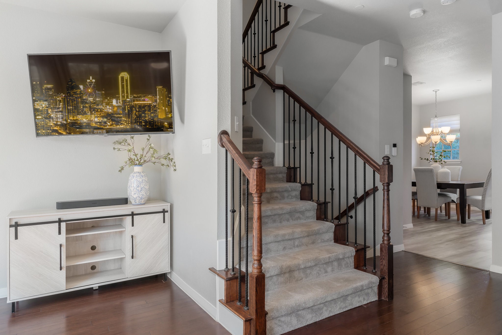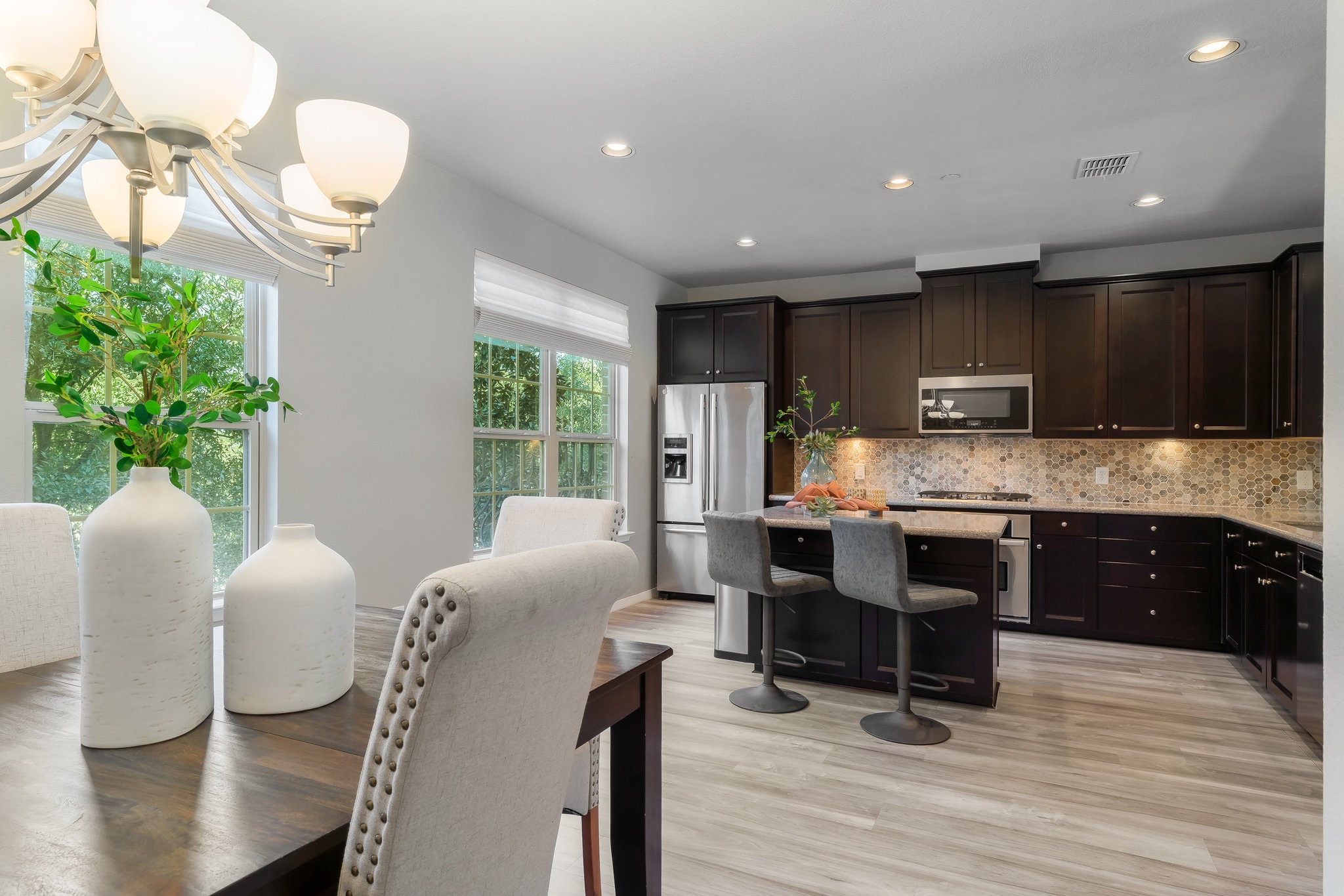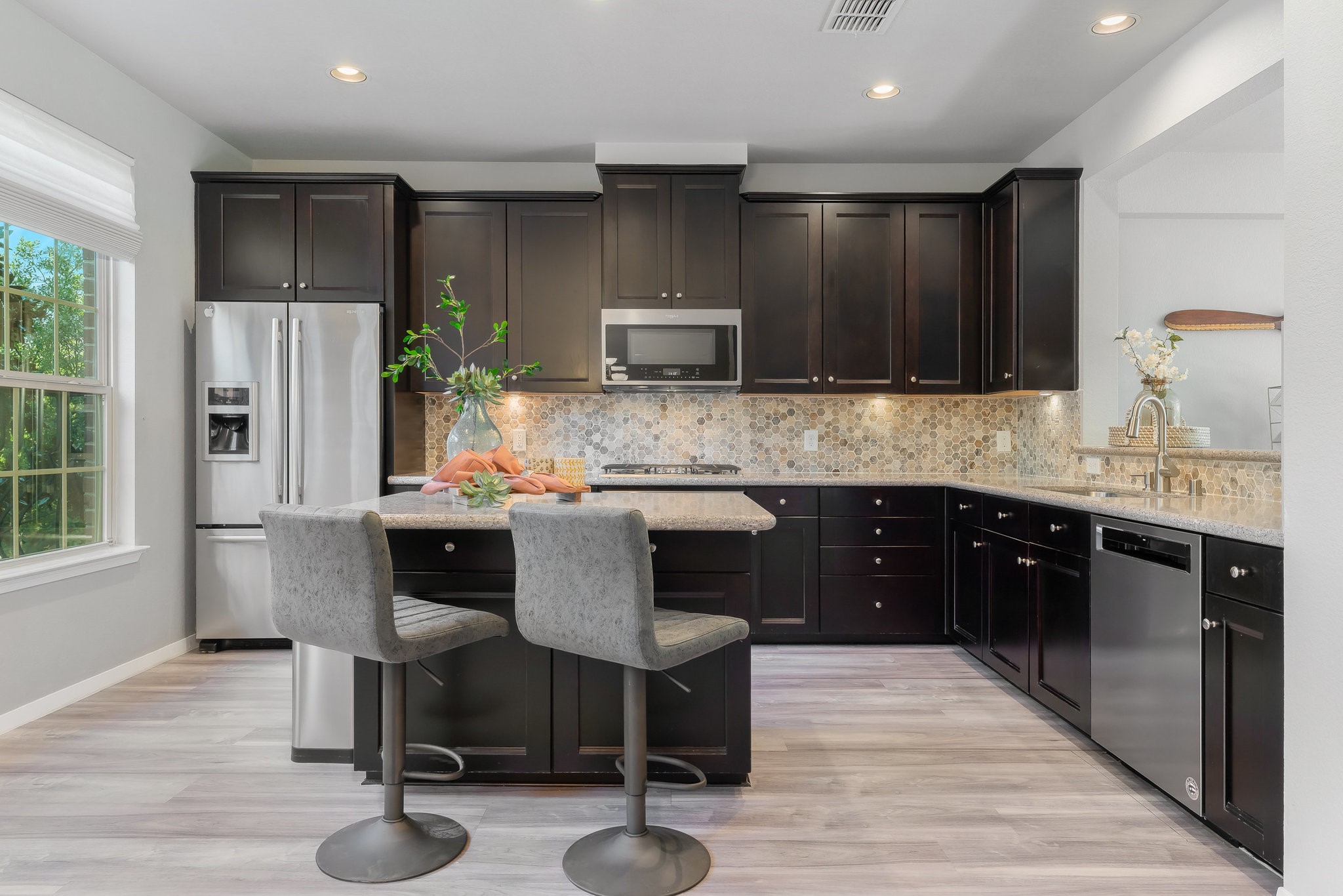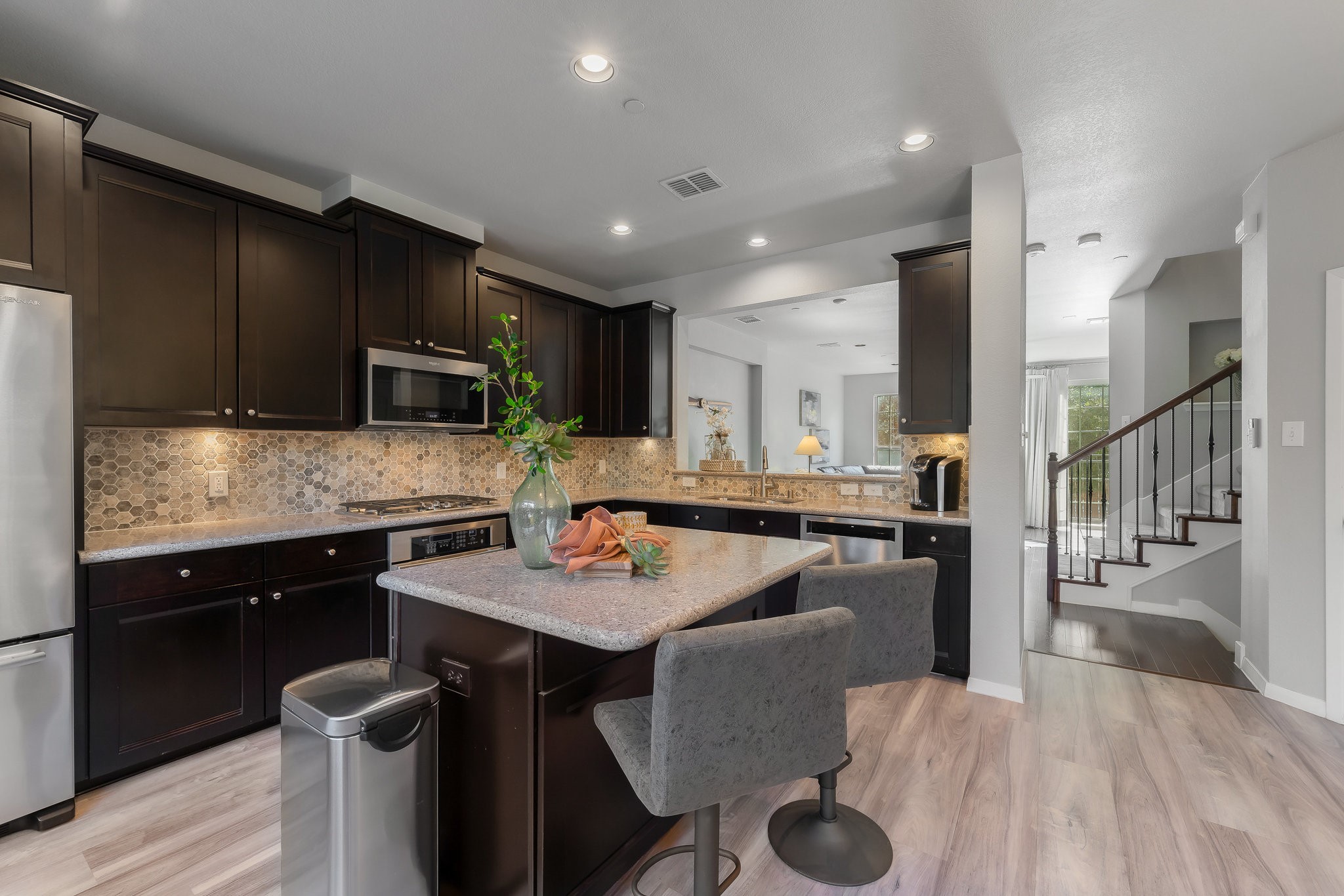 Longing for a new chapter of effortless urban living and an elevated lifestyle, right in the heart of North Dallas? Tucked away in the beautiful, tree-lined enclave of Asbury Circle, this tri-level transitional townhome is a symphony of style, sophistication & comfort, located just steps away from trendy shops, chic dining spots, Bitter Sisters Brewery, over 96 acres of parks, walking trails, and all the best that Addison has to offer. You'll feel right at home the minute you step in with spaces that feel designed just for you. The first floor sets the tone with an inviting den, game room, or office, ambient lighting, its own full bath, and direct access to a 2-car garage with a 220v outlet for EV charging, back entrance, and storage. Head upstairs to the heart of the home on the second floor, light & bright, where the beautiful chef's kitchen with Silestone counters, plenty of cabinets, gas cooktop, Refrigerator, Stainless Steel appliances, and an island seamlessly connect to the dining area and open living room. The perfect balcony for enjoying your morning coffee or unwinding under the stars is perched just outside - grills are allowed. You'll even be able to watch Kaboom Town fireworks from here! On the third floor, you'll find your peaceful sanctuary in the spacious primary suite featuring an updated bath, complete with a soaking tub, double vanity, backlit mirrors, a separate shower, and a walk-in closet to envy... Plus, two more good-sized bedrooms, another full bath, and the laundry area exactly where you need it. Asbury Circle is adjacent to the recently renovated Addison Athletic Club and state-of-the-art facilities including swimming, tennis, pickleball, basketball, gym, and fitness center. Friendly, private, neighborhood feel, tall trees, and pretty front porches up and down the street. No detail left undone. With all the perks, personality, charm, and prime location you've been looking for, Home will be your new favorite destination!