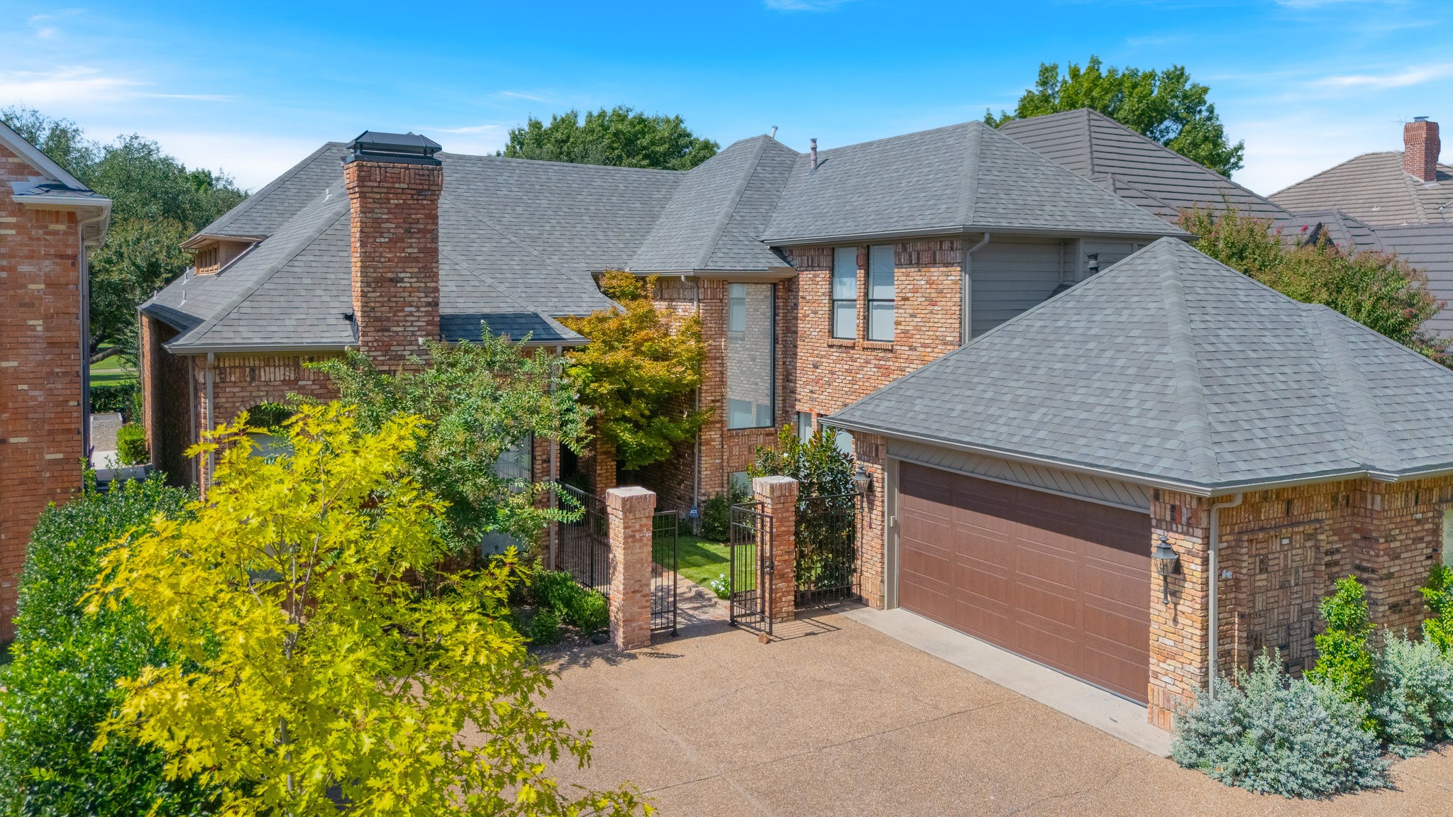 True luxury living, nestled among the winding, tree-lined enclave of Preston Fairways - homes of this quality are rare and the opportunity to own one even rarer. Backing directly to the private Preston Trails golf course, with beautiful views and resort-inspired ambiance at every turn. What if you could live here?? Sophisticated charm from the moment you enter, and vistas of the pool, spa, and lush fairways pour through oversized windows. With a living room so posh, it practically hands you a glass of champagne, the elegant, formal space, designer fireplace, and chic, double-sided wetbar and den create the ideal scene for lively parties and intimate nights in. The dining room commands attention with striking architectural lines, set beside a freshly painted kitchen featuring gleaming SS appliances, custom cabinets, coffered ceiling, counter bar, and breakfast area. The first-floor master is a show-stopper, its soaring ceilings and true, spa-worthy bath, windows set high above, bathing the entire room in light. The oversized shower-tub wet area spans nearly half the room, a sanctuary and treat all its own. Upstairs, two private bedrooms with ensuite baths cradle guests in comfort, while an elevated living area overlooks the first-floor den below. Step out to the rooftop deck for commanding views of the fairways and relax in the soft breeze. Down the outdoor spiral staircase, you'll find a freshly plastered pool and spa, a beautiful deck, turf around the pool and side yard, manicured flowerbeds, a covered patio, and an outdoor fireplace. A second yard with grass sits between the pool and golf course for added privacy. Unexpected Luxury - Maisie's Room: a one-of-a-kind, custom retreat for your furry family member is tucked under the stairs with its own private entrance and picture-perfect view. This rare offering delivers a life beautifully lived, wrapped in custom-designed luxury and beautiful views. Don't just imagine the possibilities, make it yours today!