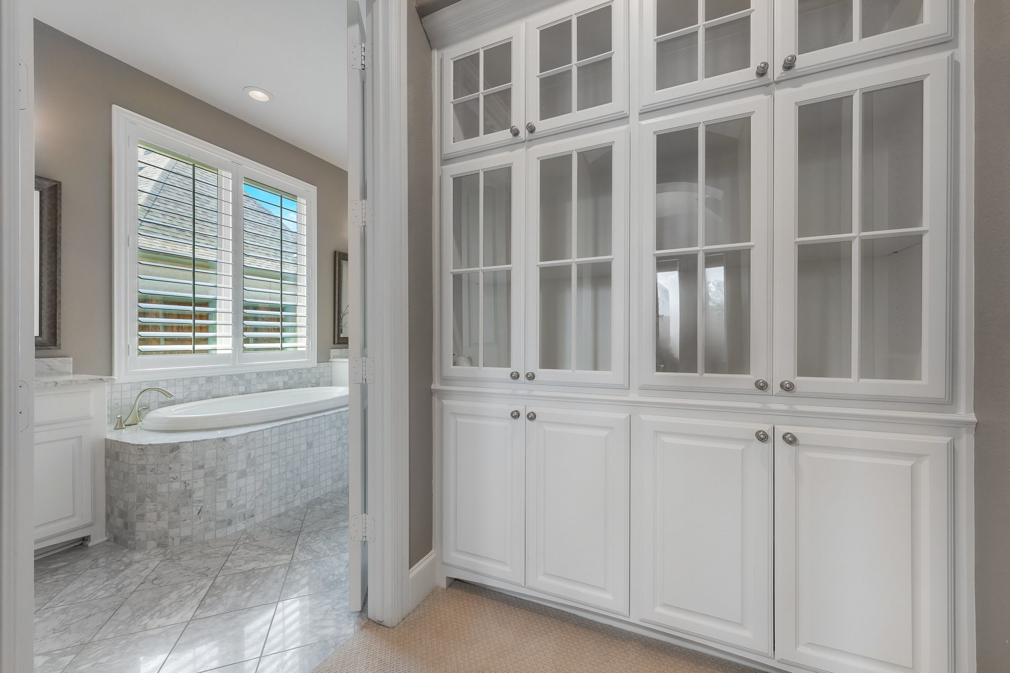 Experience elevated living in a stunning Sanders Custom Home within the exclusive, inviting Lakes of Las Colinas--a premier gated community. This bright, north-facing residence offers generous spaces for entertaining and daily life, with an open-concept family room, casual dining, and an all-white gourmet kitchen featuring a Wolf cooktop, granite countertops, butler's pantry, and wine cooler. Enjoy seamless indoor-outdoor flow overlooking the pool and covered patio, perfect for relaxed gatherings.
